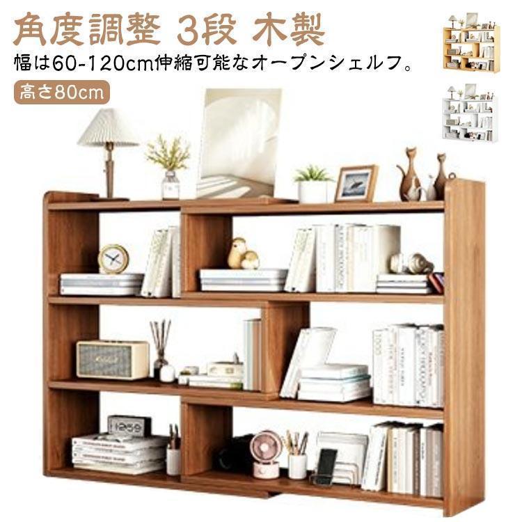 オープンシェルフ 伸縮 収納棚 本棚 書棚 収納ラック スリム 薄型 伸縮ラック 角度調整 リビング 収納 シェルフ ラック 低め 低い 3段 木製