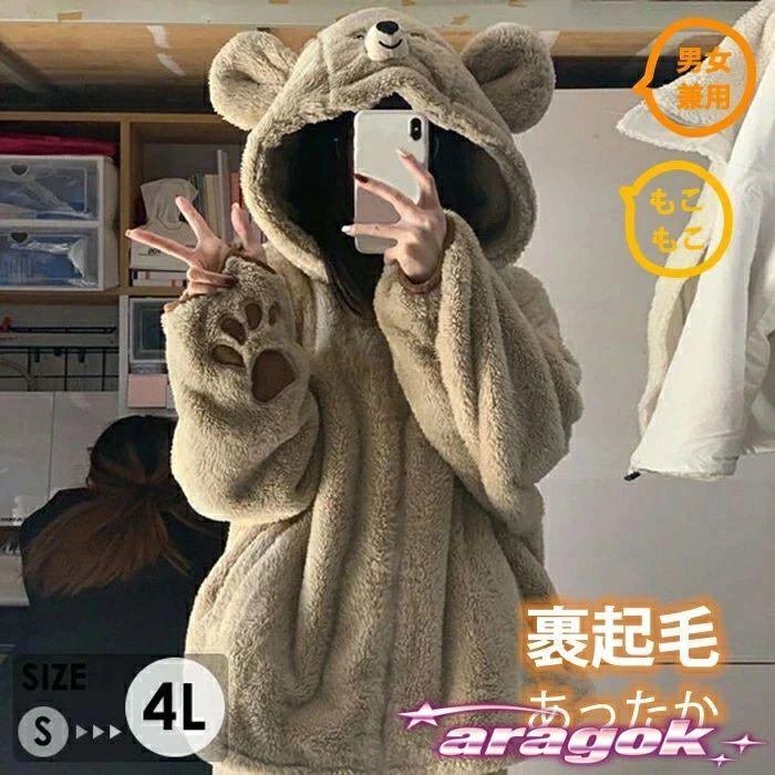 上下セット 大きいサイズ 冬 長袖 フード付き 前開き 寝巻き 部屋着 暖かい あったか 着ぐるみ モコモコ 大人用 ふわふわ 動物 レディース 女