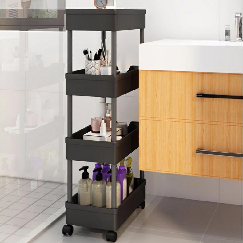 キッチンワゴン 隙間収納 キャスター付き ペットボトルラック 冷蔵庫横 洗面所 隙間ラック 3段 4段 スリムワゴン 細い棚 調味料棚