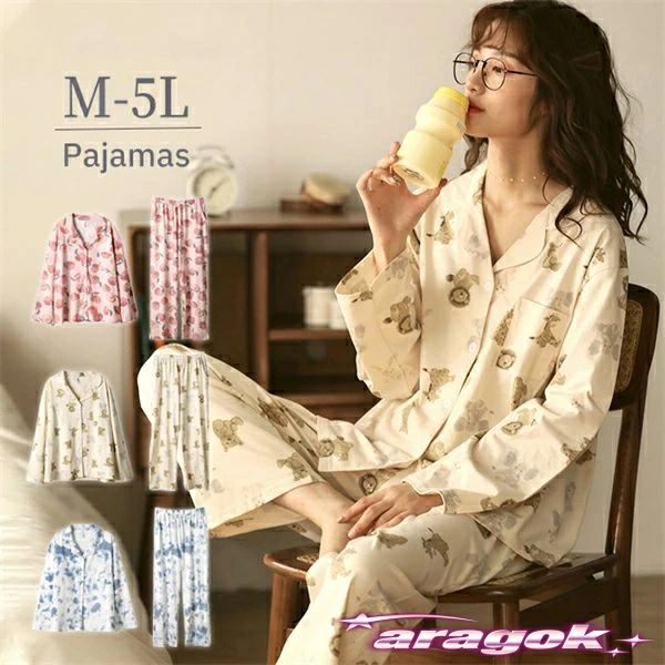 【動画あり】動物柄 パジャマ 上下セット ルームウェア レディース 長袖 大きいサイズ 4L 5L コットン ギフト 誕生日 プレゼント かわいい 着