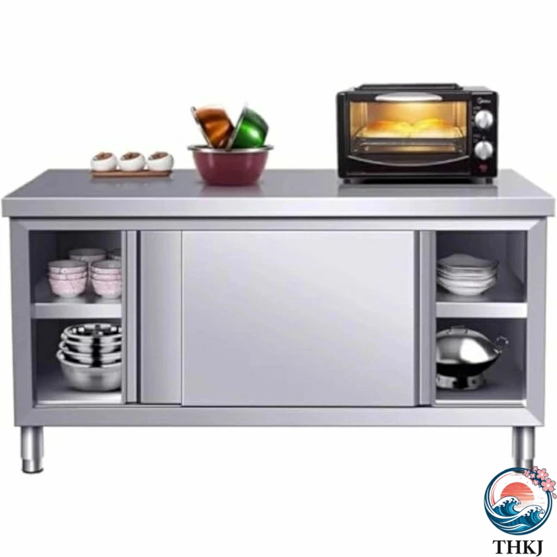 業務用調理台 - 304ステンレス製 収納キャビネット付き - キッチンアイランド 作業台 仕込み台 - プロ仕様ワークテーブル - 飲食店/ケータリング/家庭キッチン向