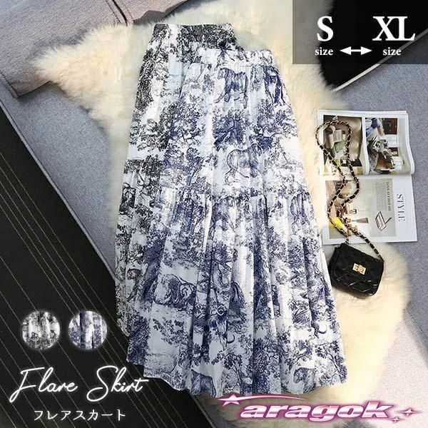 スカート ミモレ丈 総柄 Aラインスカート ペチコートあり レディース 涼しい 大人 フレアスカート カジュアル 春夏 きれいめ ゆったり ゴムウ