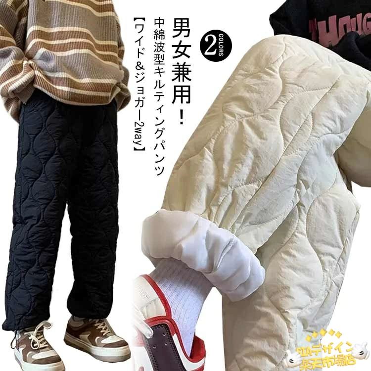 キルティング 中綿入り メンズ カジュアル 冬 レディース キルティングパンツ ジョガーパンツ ワイドパンツ 軽量 防寒 保温 ストレート ワイ