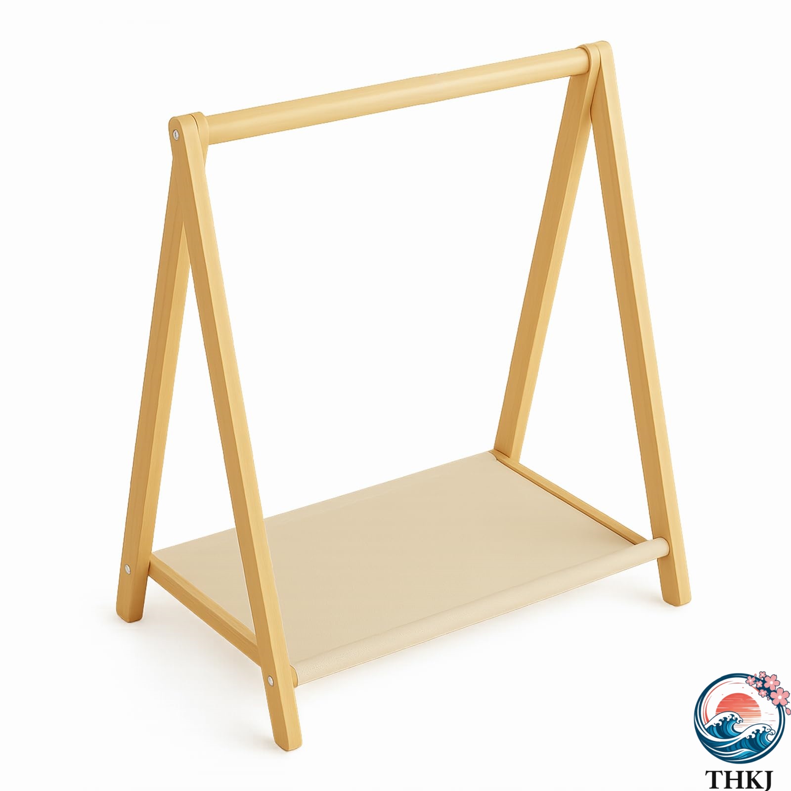 お子さまの服やバッグを整理できる天然木製ハンガーラックです。 シンプルで温かみのあるデザインは、子供部屋や玄関に自然に馴染みます。 棚付きで収納力も高く、省スペースながら実用的に使用できます。