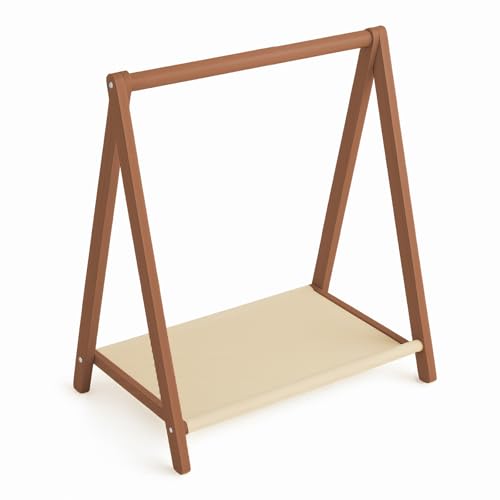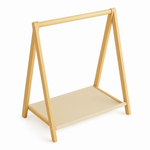 キッズ ハンガーラック 子供用 木製 ベビーハンガー 自立型 収納ラック コートハンガー 子供服 ペット用クローゼット 洋服掛け 衣類収納 おしゃれ 棚付き