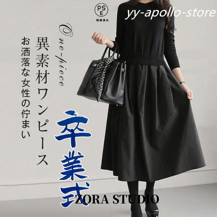 卒業式 母 服装 ワンピース レディース 服 40代 長袖 春秋 冬 卒業式 入園式 ニットワンピース 冬 ロングワンピース 着痩せ 体型カバー 通勤