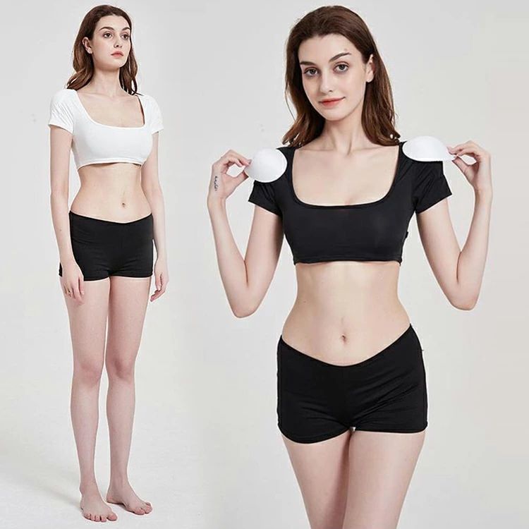 パワーショルダー ショルダーパッド なで肩 へそ出し 下着 スタイルアップ 肩パット付き 補整下着 高低差 取り外し可能 ストレスフリー 半袖 トップス シンプル