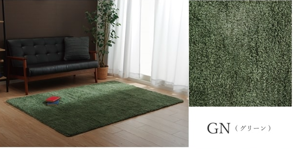 ラグ カーペット 1.5畳 無地 シャギー調 手洗い可 滑り止め付き 選べる3色 スレッド グリーン 約130×190cm