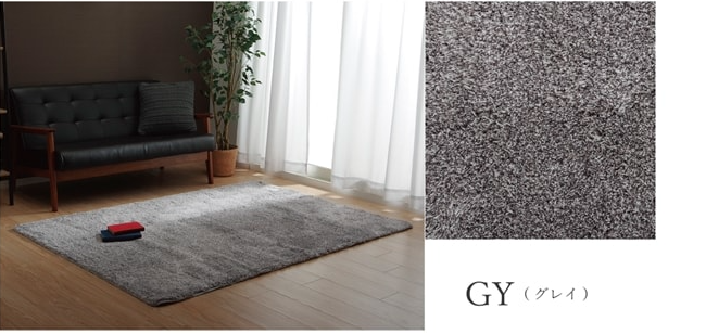 ラグ 1.5畳 無地 シャギー調 滑り止め付き 選べる3色 スレッド 【グレー】 約130×190 9616559