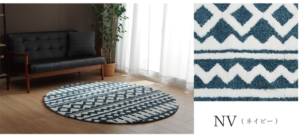 ラグ 円形 北欧柄 滑り止め付き 【ネイビー】 約160 9629149