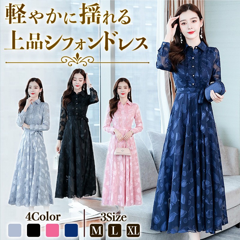 ロング ドレス ワンピース フォーマルワンピース カラードレス パーティードレス ミモレ丈 ロング 長袖 演奏会 結婚式 発表会 スレンダー