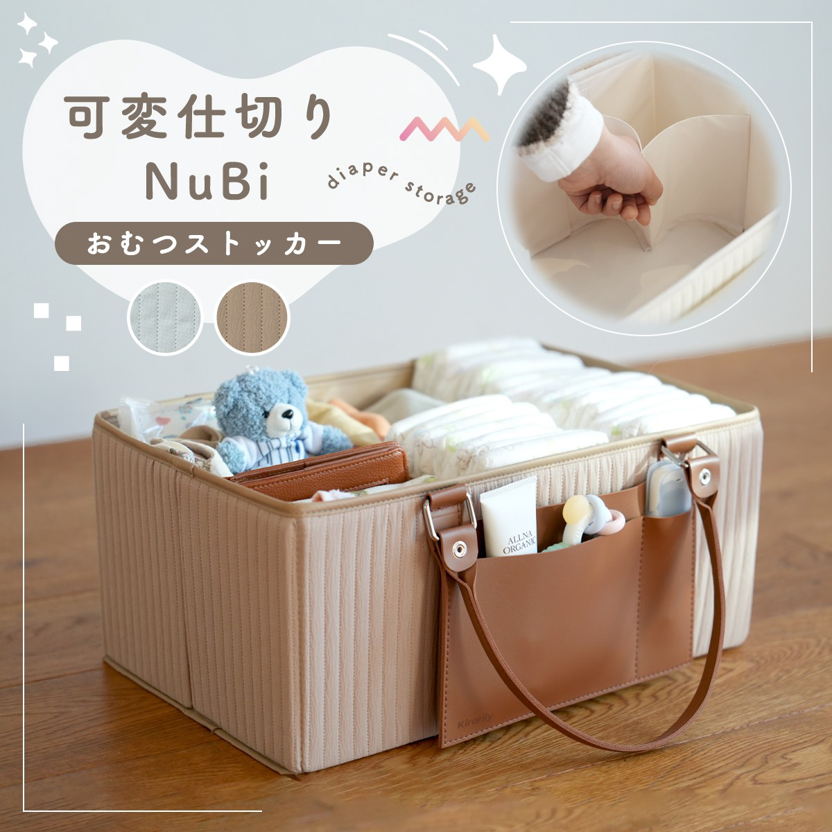 そんな変化に寄り添ってくれるのが、Kirarilyの「仕切り可変式おむつストッカー」です。