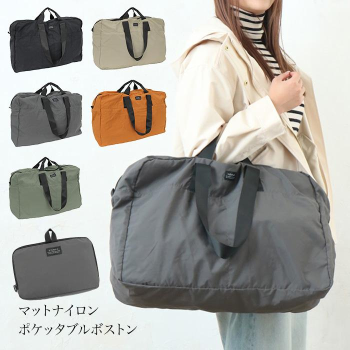 ボストンバッグ マザーズバッグ 大容量 撥水加工 ナイロン ラベルバッグ 修学旅行 旅行バッグ ポケット 【▲】/マットナイロンポケッタブルボストン