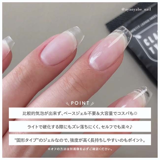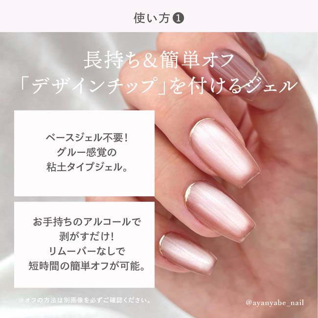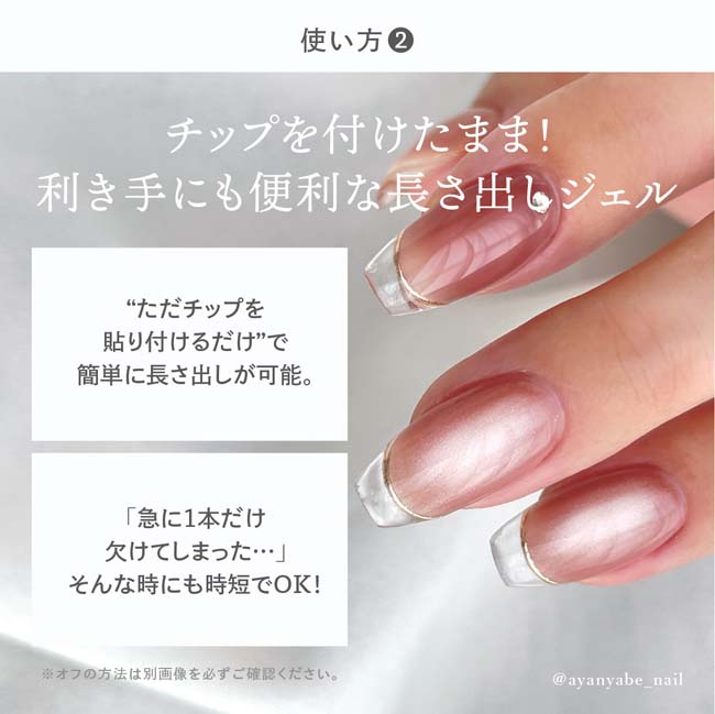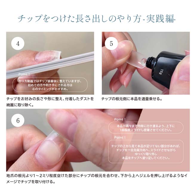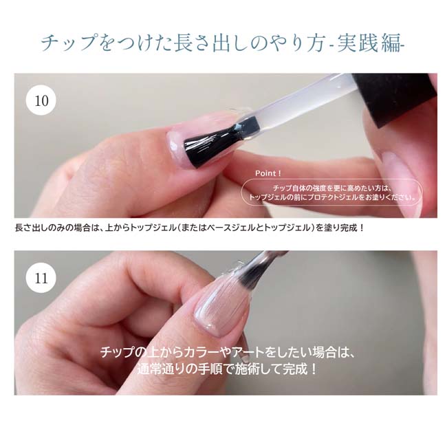 グルーのような""デザインチップ""の貼り付け、チップを付けたままの「長さ出し」どちらもできるクリアジェル。