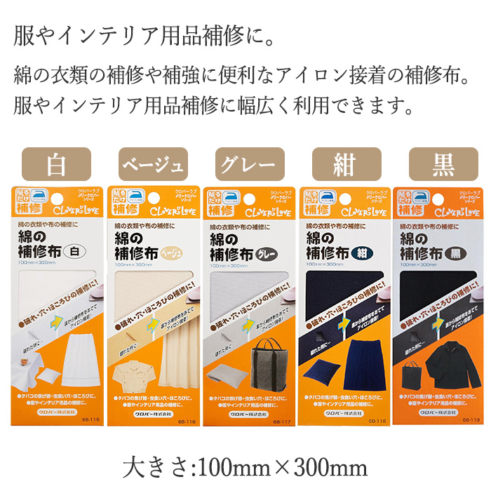 補修布 綿 全5色 100×300mm アイロン接着 焦げ跡 虫食い穴 ほころび 服 インテリア用品 カバン 補修 布タイプ アイロン 接着 【▲】/綿の補修布