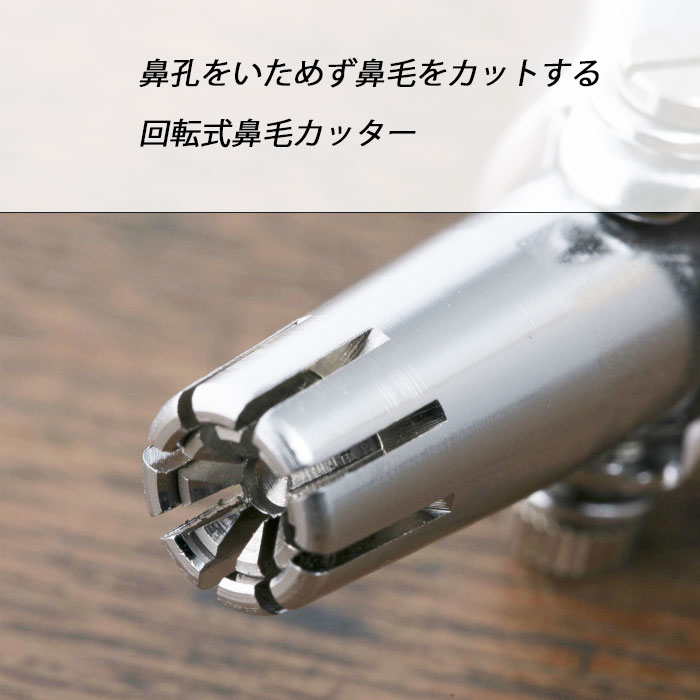 鼻孔をいためず鼻毛をカットする回転式鼻毛カッター、お掃除用ブラシ付きです。