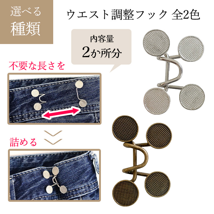 ウエスト調節 フック クリップ 金具 ウエストアジャスター ウエストサイズ 詰める 縫わない デニム 大きいウエスト 簡単 便利 ミササ 【▲】/ウエスト調整フック