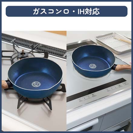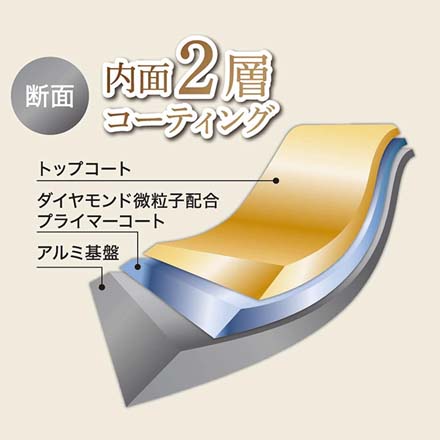 ■材質 表面加工/内面:ダイヤモンド微粒子配合ふっ素樹脂加工、本体/アルミニウム合金(底の厚さ2.3mm)、はり底/18-0ステンレス鋼、取手/フェノール樹脂(木目調転写)