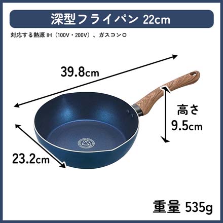 ●IH対応 ダイヤモンドコーティング 深型フライパン 22cm CF-02
