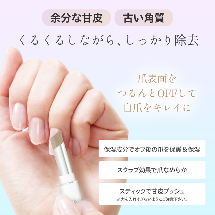 適量をくり出し、爪の生え際に沿って指の腹でやさしくマッサージするように直接塗布してください。