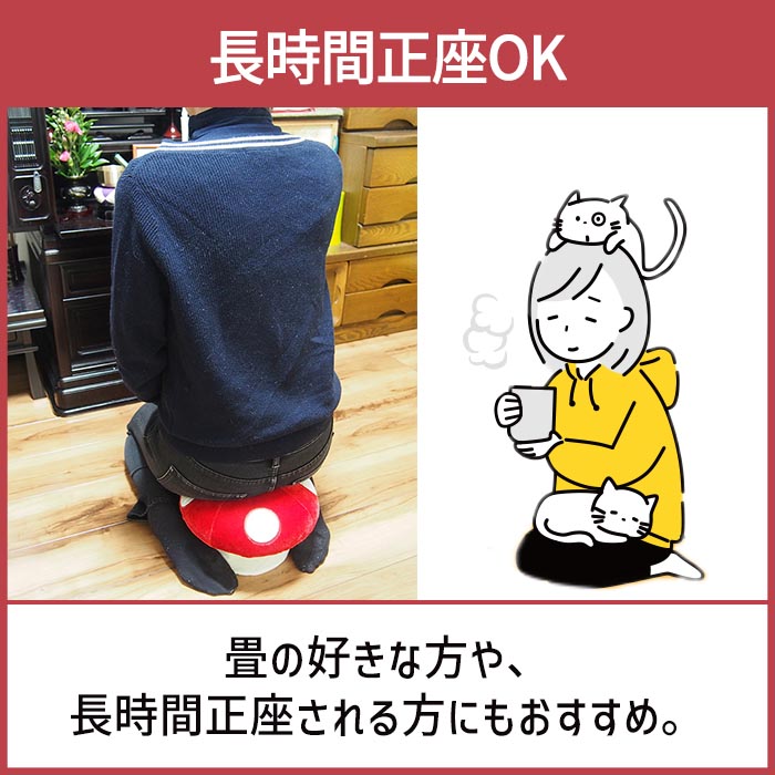正座をして姿勢を保ち、足もしびれないで色んな場面に大活躍。
