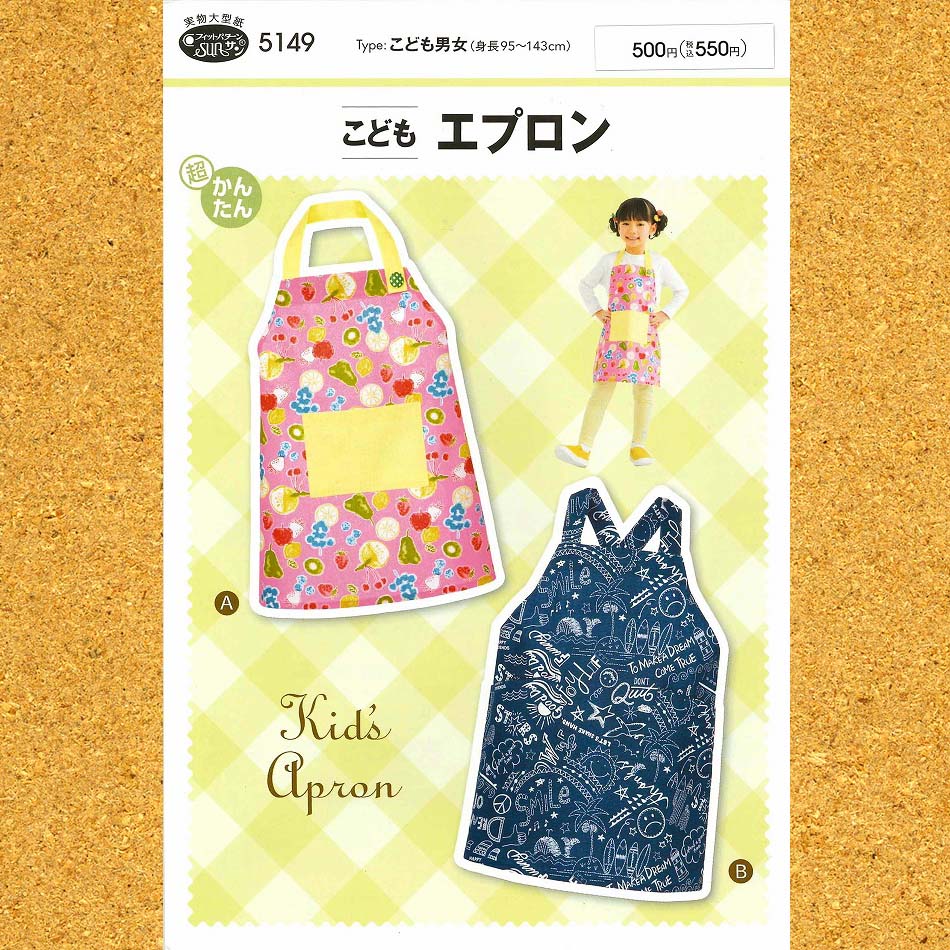 【完売終了】エプロン こども 男女 身長95〜143cm 実物大型紙 フィットパターン SUN 5149
