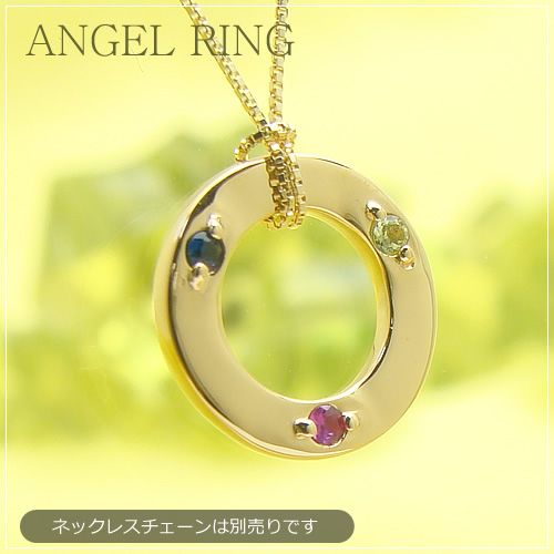刻印できる誕生石エンジェルリング ANGEL RING 天使の輪 ベビーリング K18イエローゴールド 宝石3個 ネックレスチェーンは別売りです