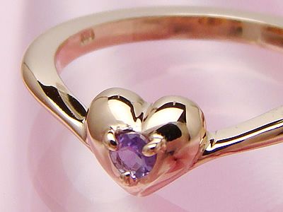 刻印のできるサイズの大きなハートのベビーリングK10ピンクゴールド アメジスト】