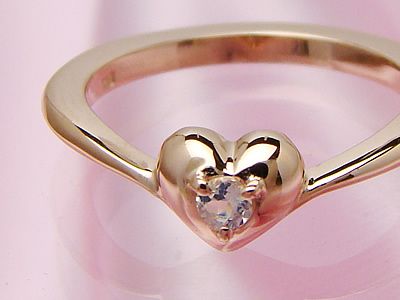 刻印のできるサイズの大きなハートのベビーリングK10ピンクゴールド ムーンストーン】