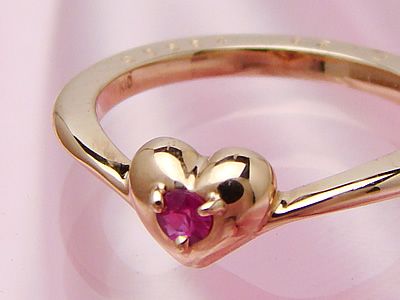 刻印のできるサイズの大きなハートのベビーリングK10ピンクゴールド ルビー】