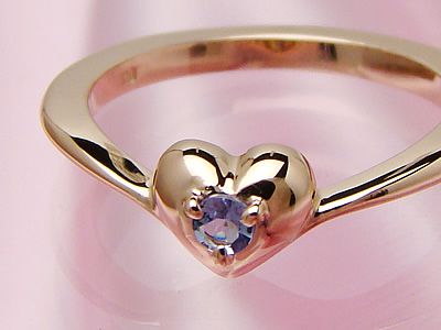 刻印のできるサイズの大きなハートのベビーリングK10ピンクゴールド タンザナイト】