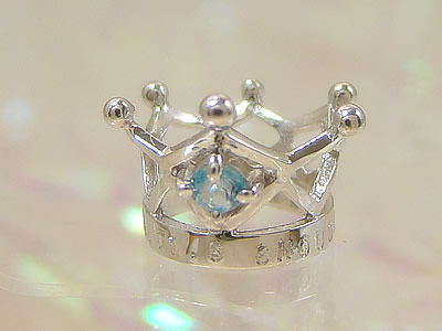刻印できるクラウンべビーリングプラチナ ブルートパーズ