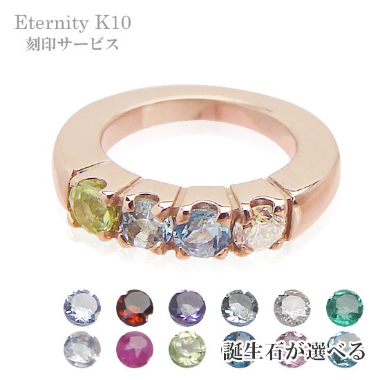 リングに刻印できて4個の宝石が選べるベビーリング エタニティ ピンクゴールドK10