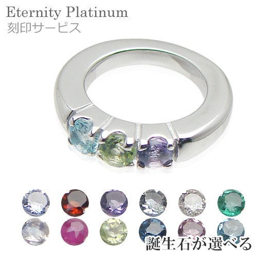 リングに刻印できて3個の宝石が選べるベビーリング エタニティ プラチナ