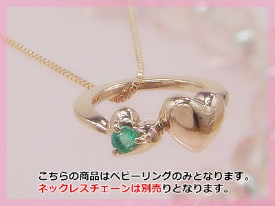 ネックレスチェーン別売り 刻印できるダブルハートべビーリングK10ピンクゴールド エメラルド