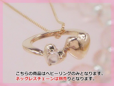 ネックレスチェーン別売り 刻印できるダブルハートべビーリングK10ピンクゴールド ムーンストーン
