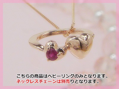 ネックレスチェーン別売り 刻印できるダブルハートべビーリングK10ピンクゴールド ルビー