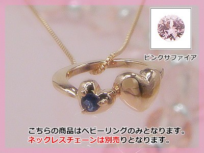 ネックレスチェーン別売り 刻印できるダブルハートべビーリングK10ピンクゴールド サファイア(またはピンクサファイア)