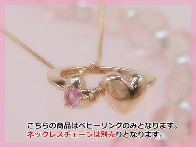 ネックレスチェーン別売り 刻印できるダブルハートべビーリングK10ピンクゴールド ピンクトルマリン