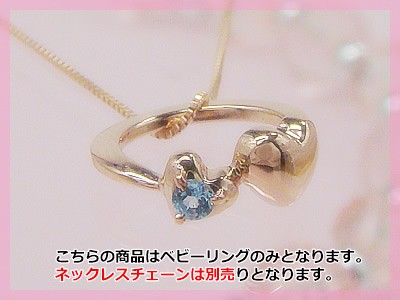 ネックレスチェーン別売り 刻印できるダブルハートべビーリングK10ピンクゴールド ブルートパーズ
