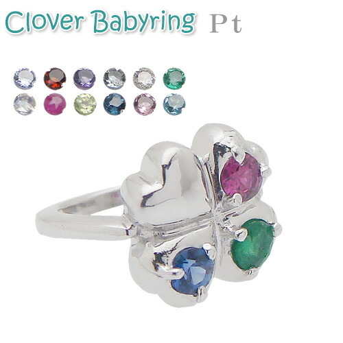 ベビーリング 誕生石が3個選べる四葉のクローバー プラチナ/刻印無料/ペンダントトップ/アクセサリー/出産記念/誕生祝い/出産祝い