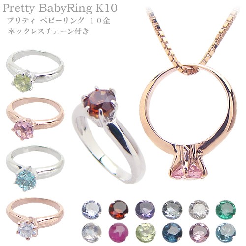 ベビーリング K10 プリティ 10金ホワイトまたはピンクゴールド ベネチアK10ネックレスチェーン40cm付き