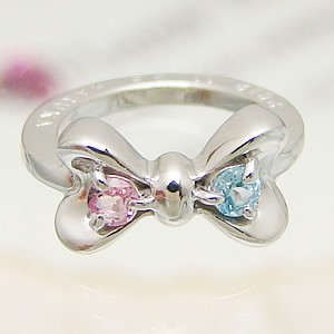 刻印できるかわいいリボンのベビーリング プラチナ 宝石2個