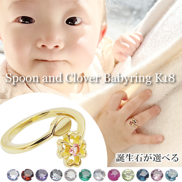 サイズフリー「刻印できるスプーン&四葉のクローバーベビーリング」 | ||