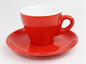 美濃焼のエスプレッソカップ&ソーサーのセット。赤色、容量60ccです。