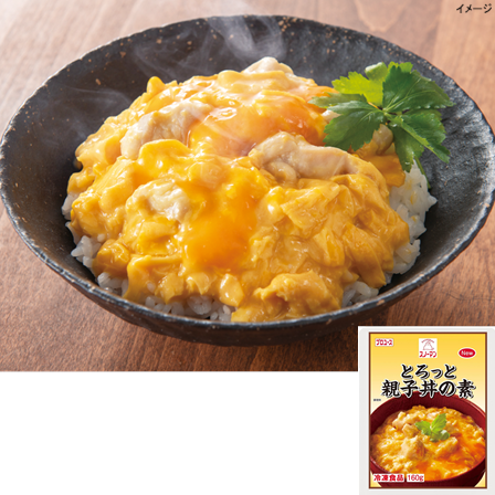 加熱しても固まらず、半熟卵のようなコクや食感が味わえる親子丼の素です