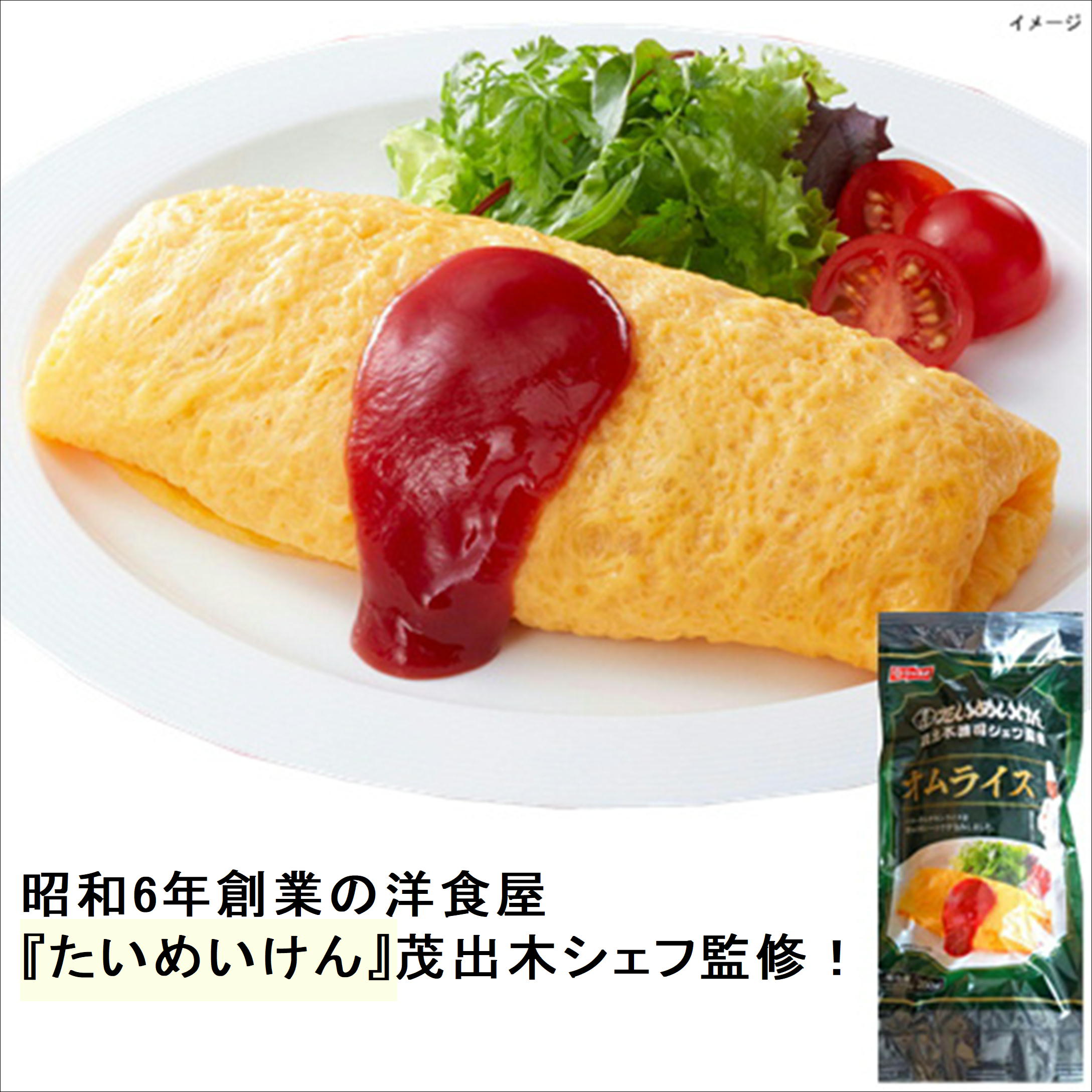 昭和6年創業の洋食屋『たいめいけん』茂出木シェフ監修!洋食の王道!バター香るチキンライスを厚めの卵シートで手包みで仕上げたオムライスです。お好みでケチャップやデミグラスソースをかけてお召し上がり下さい。