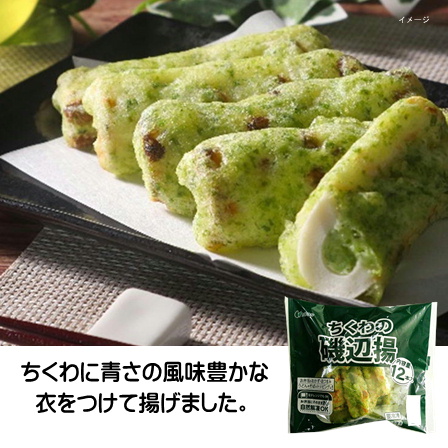 レンジ又は自然解凍でOK!ちくわに青さの風味豊かな衣をつけて揚げました。お弁当のおかずやおつまみに。