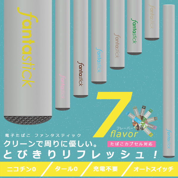 | 商品説明 | クリーンで周りに優しい。とびきりリフレッシュ! 多くのお客様からの「VCCの再販はまだ?」というご要望にお応えし、7種類の選べるフレーバー、 さらに機能がアップして進化を遂げた確かな実力をぜひ、体験してください。 Evolve 1 Evolve 2 【7種類の選べるフレーバー】 ・気分に合わせて選べ、美味しさが広がる ・氷結メンソール スッキリしたい気分のときは、ヒヤッとした爽快感が味わえるメンソール ・バニラ バニラの特徴的な甘い香りは、疲れを癒し緊張を和らげ、幸せな気分に ・チョコレート 味や香りのバランスと程よい苦み・・・の使い方が心身をリラックス ・クリアメンソール クールな中にほのかな甘味の絶妙なバランスが味わえるメンソール ・イチゴミルク ちょっとしたイライラや憂鬱な気分をリセットしたいときにオススメ ・バナナミルク バナナの甘味と香りが口の中で広がっていき、風味豊かな、どこか懐かしい味わいがプラス ・タバコフレーバー ほんのり甘酸っぱい風味とタバコの香ばしい香りのバランスが緊張を和らげます Evolve 3 【美味しさ&吸いごたえ!満足度が高い蒸気量(ミスト)】 ファンタスティックの良いところの一つでもある煙(水蒸気)の量は他の電子タバコと比べて満足いく煙量です。 吸ってる、吐き出してる、という満足感が得られタバコの代用品として十二分な吸いごたえのあるスティックです。 【ファンタスティックはこんな方におすすめ】 ・お手軽にリフレッシュしたい ・禁煙したい、禁煙を始めてから口が寂しい ・部屋や車の中で気軽に吸いたい ・このページを何気なく見てしまった方 【美味しさ&吸いごたえ!満足度が高い蒸気料(ミスト)】 ファンタスティックの良いところの一つでもある煙(水蒸気)の量は他の電子タバコと比べて満足いく煙量です。 吸いごたえも煙感もありタバコの代用品として十二分な吸いごたえのあるスティックです。 ※ファンタスティックはVCC後継商品です。 ニコチン0、タール0、副流煙0 ニコチン・タール等の有害物質は一切含まれていません 【本体サイズ】約: Φ0.9cm×13cm ・製品本体:ステンレス ・内蔵リチウム電池280mAh ・容量:1.2ml ・吸引可能回数:約350-500回(吸い方により個人差がございます) 化粧箱:紙 【原産地】中国 【使用方法】 ・シリコン製キャップを外し、口にくわえて吸ってください。 ・吸引時は、先端のLEDライトが点灯します。 ・使用後は、透明のキャップをもとに戻してください。 ・ふかしではなく、深呼吸をするようにゆっくりと吸い込むと吸い応えが良く感じます。 【使用上の注意】 ・20歳未満の未成年者への販売はいたしません。 ・駅や空港、病院などの公共機関や喫煙が禁止されている場所、他人に迷惑をかける場所での吸収はしないでください。 ・喘息等の持病がある方、妊娠中または授乳中の方は使用しないでください。薬を服用されている方や持病のある方は医師にご相談の上、ご使用ください。 ・万が一、身体に異常を感じた場合は、直ちにご使用をやめ、医師の診断を受けてください。 ・急な吸収や過度な吸収、連続した吸収等は故障の原因となります。 ・強い衝撃や圧力を加えないでください。 ・水に濡らしたり湿気の多い場所、火気のそばで使用しないでください。感電やケガ、故障の原因となります。 ・小さなお子様の手の届く場所、直射日光や高温多湿の場所、炎天下の車内等に保管しないでください。液漏れや破裂等、性能低下や故障の原因となります。 ・分解、修理等は絶対にしないでください。 ・本体の処分につきましてはリチウム電池を内蔵しておりますので、各地方自治体の廃棄処分に従ってください |