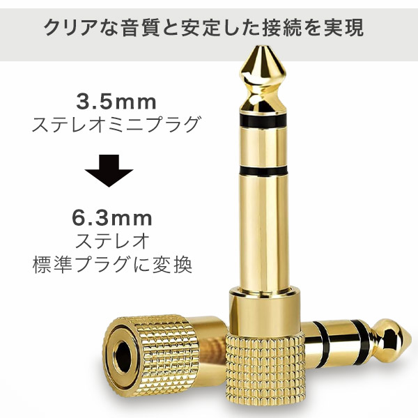 | 商品説明 | 音楽愛好家の皆さん、注目です! この小さな変換プラグが、あなたのオーディオ体験を一変させるかもしれません。 ステレオオーディオ変換プラグは、3.5mmステレオミニプラグを6.3mmステレオ標準プラグに変換する、まさに音楽の世界を繋ぐ架け橋。 高品質な金メッキ仕様により、クリアな音質と安定した接続を実現し、あなたの大切な音楽を忠実に再現します。 \ステレオオーディオ変換プラグのここがポイント/ ■高品質な音声伝送 金メッキ仕様により、クリアな音質と安定した接続を実現します。 ■幅広い互換性 3.5mmステレオミニプラグを6.3mmステレオ標準プラグに変換し、様々な機器で使用可能です。 ■耐久性と信頼性 高品質な素材と構造により、長期間の使用に耐える堅牢な設計です。 ■簡単な使用方法 プラグアンドプレイ方式で、特別な設定なしですぐに使用できます。 音楽の可能性を広げる、あなたの必須アイテムですね! 幅広い互換性も魅力の一つ。電子楽器やアンプ、様々なオーディオ機器との接続を可能にし、あなたの音楽の可能性を無限に広げます。 高品質な素材と堅牢な設計により、長期間の使用にも耐える信頼性も兼ね備えています。 使い方も簡単。プラグアンドプレイ方式なので、特別な設定は不要。接続するだけですぐに使用できます。 【スタッフVoice】 小さな部品が生み出す大きな可能性に驚き! このプラグ一つで、手持ちのヘッドフォンを様々な機器で使用できるようになりました。特に電子楽器との相性が抜群で、練習や録音の幅が一気に広がりました。音質の劣化もなく、まるで魔法のようなアイテムです。音楽を愛する全ての人にオススメしたい一品です! ・3.5mmステレオミニプラグを6.3mmステレオ標準プラグに変換します。 ・片側:ステレオミニ3.5mm(メス) ・片側:標準プラグ6.3mm(オス) ・ハイグレード金メッキ仕様 【商品特徴・キーワード】 ステレオ変換プラグ 3.5mm to 6.3mm アダプター ヘッドホン変換コネクター オーディオ変換アダプター 金メッキ変換プラグ 電子楽器用アダプター 【注意事項】 ※本商品には説明書が付属しておりません。使用方法に関しては商品ページをご参照ください。 ※商品画像はご覧になっているモニターやPCなどの環境、解像度により、実物と多少カラーが異なる場合がございます。色味やサイズが異なるなどのクレームはご対応致しかねますので、予めご了承ください。 ※輸送中に外装に傷やへこみが起こる場合がございますが、商品に影響はございませんので、予めご了承のもとお買い求めください。 ※本商品は海外からの輸入品ですので、細かい傷や汚れなどある場合がございます。予めご了承のもとお買い求めください。 ※こちらの商品は安価にご提供するため、簡易包装、簡易パッケージとなっております。 ※製造時期によって一部デザインが変更になる場合がございます。予めご了承のもとお買い求めください。 ※本商品に傷、歪み、破損などがあった場合には怪我、事故の恐れがありますので、直ちに使用を中止し破棄してください。 ※本商品を使用した事による、直接もしくは間接的に生じた損害、事故、怪我、故障について当店は一切の責任を負いません。 ※本商品は小さな部品を使用しております。誤飲等の危険性があるため、お子様がご利用になる場合は大人の方と一緒にご使用頂き、お子様の手の届かない場所で保管してください。 ※ステレオ(3極)機器用です。モノラル2極及びステレオ4極には対応しておりません。 ※スマートフォンの接続には対応しません。 ※iphone純正のイヤホンにはご利用になれません。 ※本商品はすべての環境、機器との接続を保証するものではございません。一部のBluetooth機器では環境、相性等により接続できない場合がございます。予めご了承ください。 |